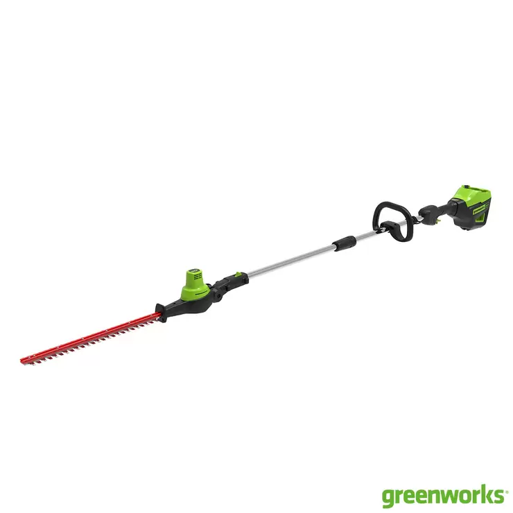 The Greenworks GWGD60PHT51 is a powerful long reach hedge trimmer designed for tall hedges due to its extended reach. At 2m in length this hedge trimmer can easily cut hedges up to to 3m high.