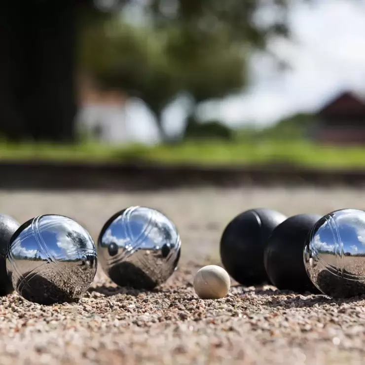 - 6 x Petanque balls (3 x black, 3 x chromed)