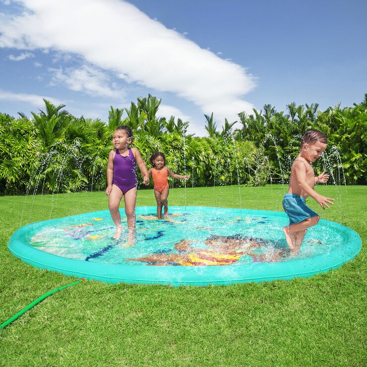 The H2OGO!® Underwater Adventure Sprinkler Pad is redefining backyard fun. Big and little kids alike will love the shallow splash pool created with the inflatable rim that surrounds the pad and traps the water for frolicking, splashing fun. Get ready to dance beneath a cascade of cool water! Just hook up your garden hose to create the gentle streams that will not only inspire play and imagination but keep everyone cool under the warm summer sun. Kids can jump, splash or wade in the water. Kids will be captivated by the friendly ocean themed graphics and parents will enjoy the easy set-up and safe water play. Everyone will find something to enjoy with Underwater Adventure Sprinkler Pad.