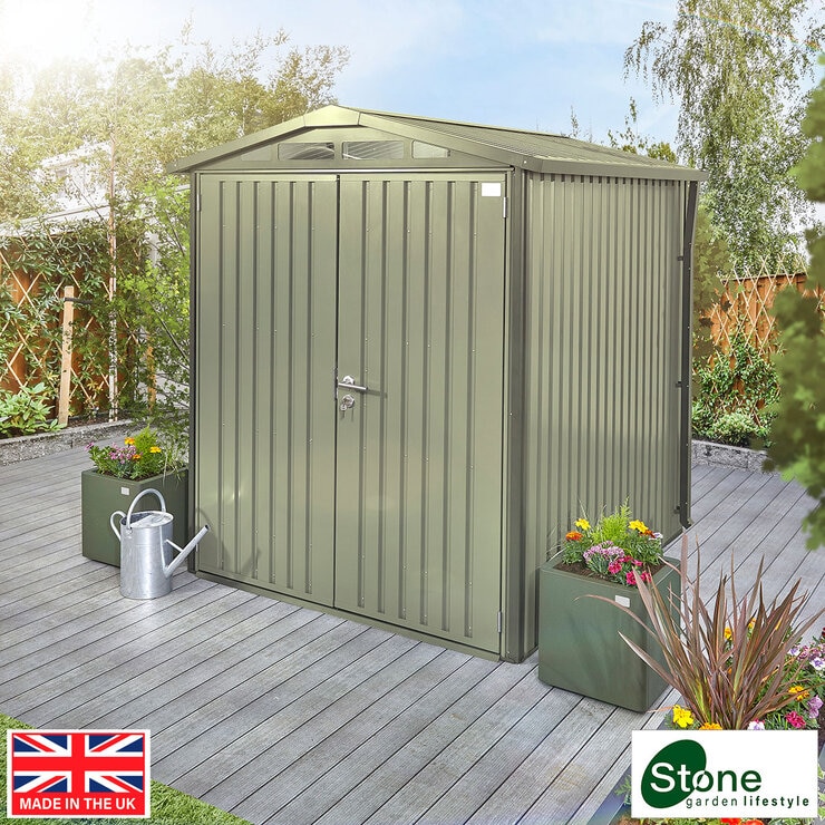 Stone Garden 6ft 2" x 7ft 10" (1.89 x 2.4m) Apex Steel Shed in Green