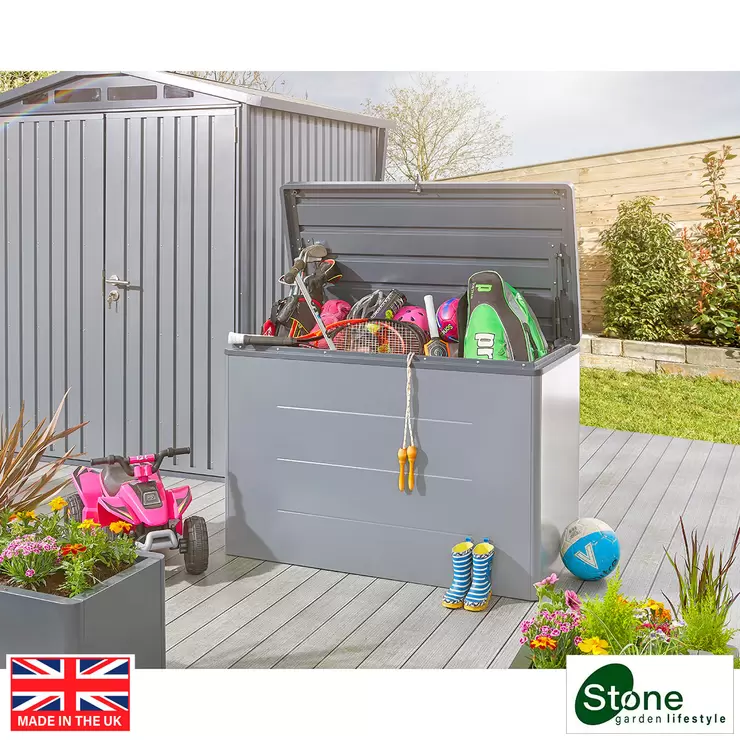 Made from durable, powder-coated, galvanized steel, the Stone Garden storage box requires zero maintenance, providing year-round protection for your outdoor essentials.