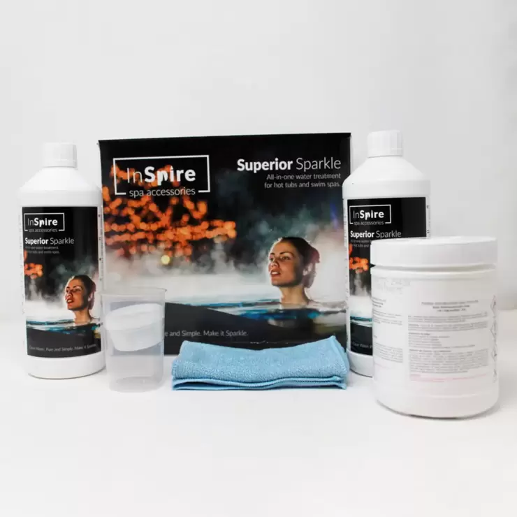 InSpire Superior Sparkle can be used in your spa or hot tub. Superior Sparkle will help you to keep the water in your spa clean in a safe, simple and effective way. Only one weekly treatment is required to help you to prevent calcium deposits in your system. Moreover, Superior Sparkle will loosen and remove the existing calcium deposits, these calcium deposits are the medium where bacteria and other micro-organisms grow. The ozone- or UV-system already in your spa, will do the rest. This InSpire Superior SparkleKit will destroy the bacteria and disinfect the water with extraordinary results. Leave the water in your spa not only clean, but also looking crystal clear and nice and soft.