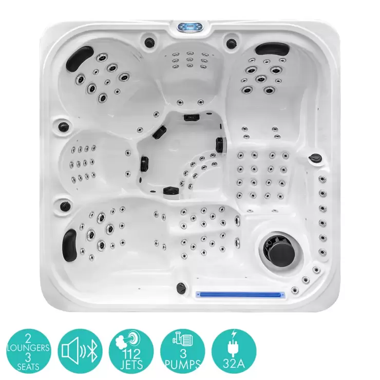 - 3 hydro massage seats and 2 comfortable lounger seats