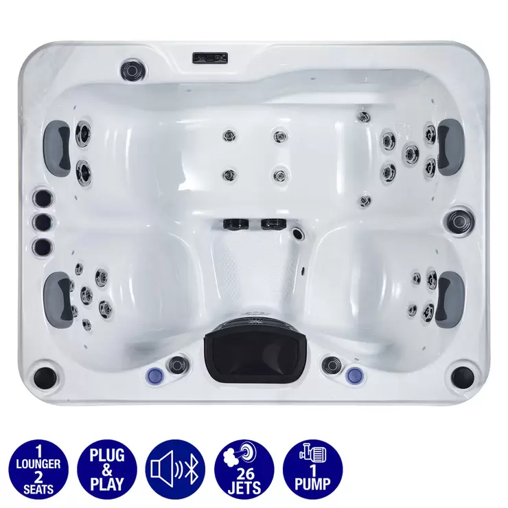 The ideal choice for a compact and intimate spa. The Relax 1 hot tub is the ideal choice for those seeking a compact and intimate spa experience. Designed for up to three people, it features one ergonomic lounger and two sculpted seats, making it perfect for couples or small gatherings. With 26 strategically placed hydrotherapy jets, it provides a soothing massage to melt away stress and tension. Built with perimeter wrap-around insulation, the Relax 1 ensures excellent heat retention while remaining energy-efficient. A 2kW heater and 3HP pump maintain consistent warmth and water circulation, creating a comfortable and effortless spa experience.