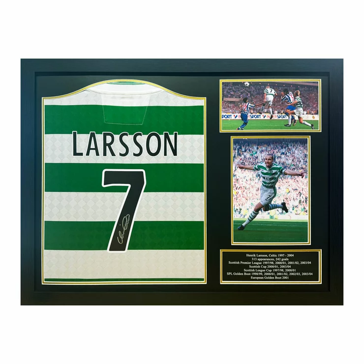 Henrik Larsson Signed Framed Celtic Football Shirt