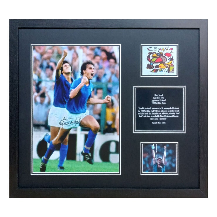 Here is a 16×12 inch photo of the “Tardelli cry”, after scoring during the 1982 World Cup Final, helping Italy to a 3-1 win over West Germany. The photo was personally signed at a signing session carried out and attended by Allstarsignings in Birmingham, 21st November 2010.