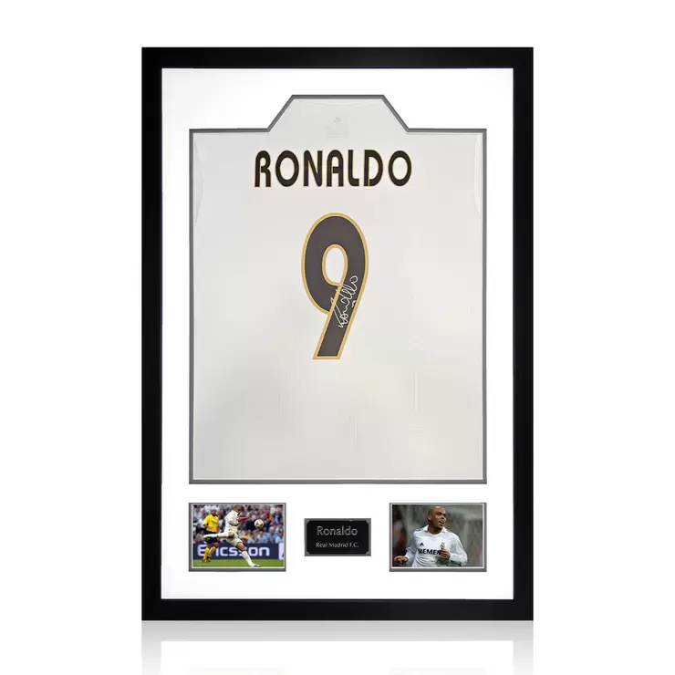 Ronaldo Signed Framed Real Madrid 02/03 Football Shirt including 2 Photos