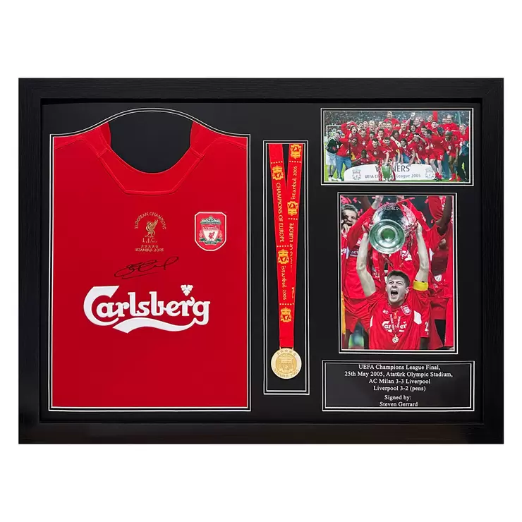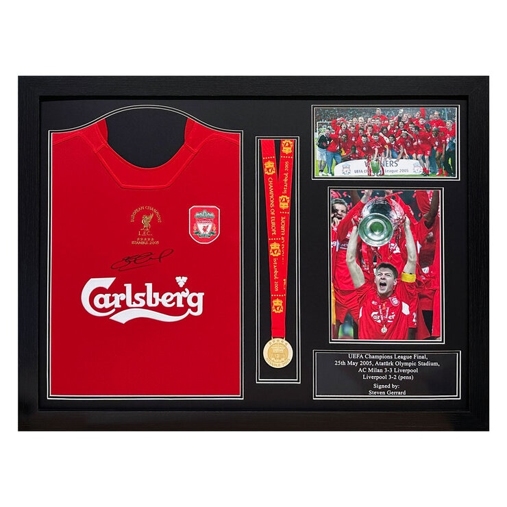 This is a Liverpool official 2005 Champions League Final shirt, signed by Kop Legend, Steven Gerrard at a signing session carried out and attended by Allstarsignings on 13th March 2019. Professionally framed to an overall size of 80x60 cm.