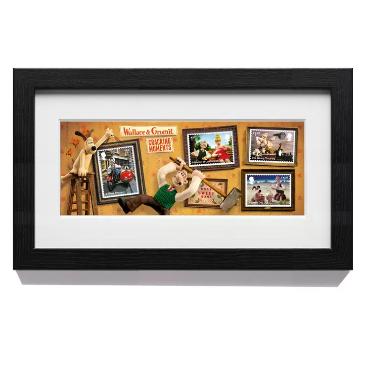 - The Wallace & Gromit Miniature Sheet in a black ash-effect frame
