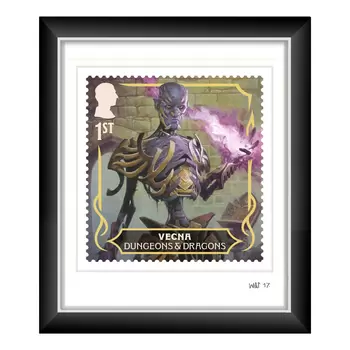 An enlarged print of the First Class stamp featuring remarkable artwork of the legendary lich Vecna. Professionally mounted in a premium black frame, this striking souvenir is also signed by Wayne Reynolds, this issue’s stamp artist. Strictly limited availability – just 150 framed available worldwide.