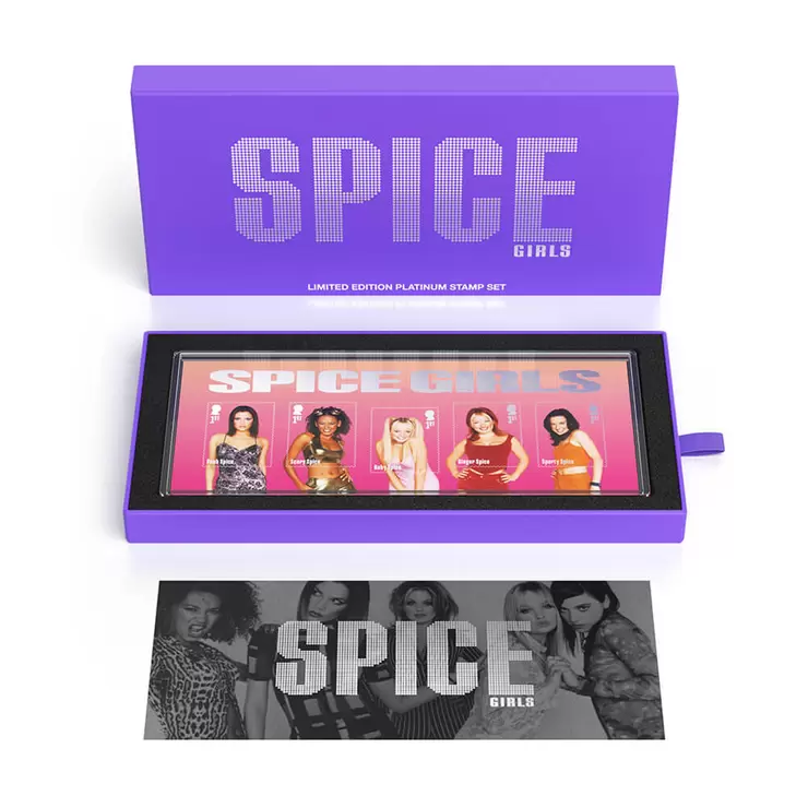 A remarkable limited-edition keepsake celebrating 30 years of Girl Power. The Spice Girls Miniature Sheet with unique, platinum-layered stamps. Act swiftly – only 1,000 of these extraordinary souvenirs exist worldwide! Don't miss your chance to own a piece of pop culture history and celebrate the unstoppable force of Girl Power. The clock is ticking, and these platinum treasures won't wait. Elevate your collection now!