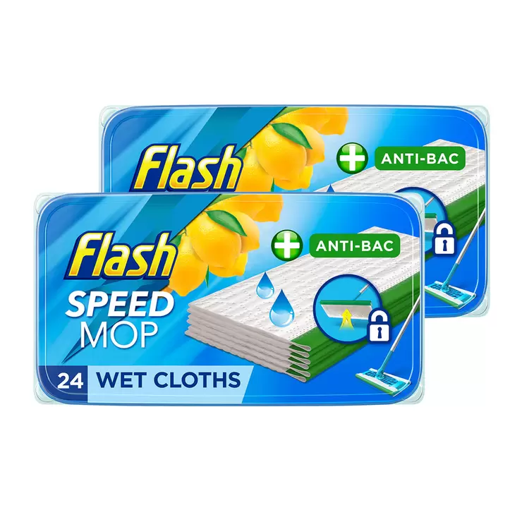 Flash Speedmop Wet Cloths Lemon Multi-Surface Refills, 2 x 24 PackFlash Speedmop Wet Cloths Lemon Multi-Surface Refills, 2 x 24 Pack