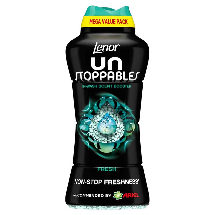 Lenor Unstoppables Fresh Scent Booster provides an in-wash scent boost that injects freshness into every wash. With their non-stop freshness, Lenor Unstoppables keeps up to 12 weeks with boosted freshness (in storage), so your clothes are always ready to wear, infused with your favourite scent. Lenor scent experts recommend Unstoppables Fresh if you are looking for a sparkling citrus and juicy fruits scent wrapped into transparent floral notes. For an optimal use, Lenor Unstoppables scent boosters should be added into the empty drum before every wash; then add clothes, detergent, fabric conditioner, your usual laundry routine.