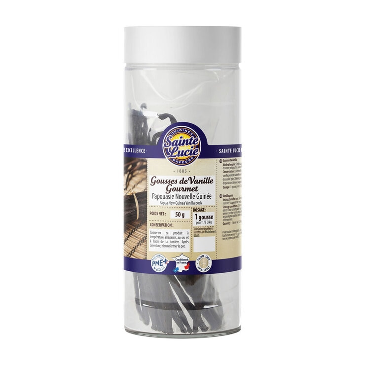 Sainte Lucie Bourbon Vanilla Pods are from Madagascar with a rich vanilla flavour, ideal for baking and flavouring tea or coffee. Slice the pod in two, and leave to steep in your hot milk mixture. Scrape out the seeds and mix them into the milk. Use 1 bean for up to 2L in preparation.