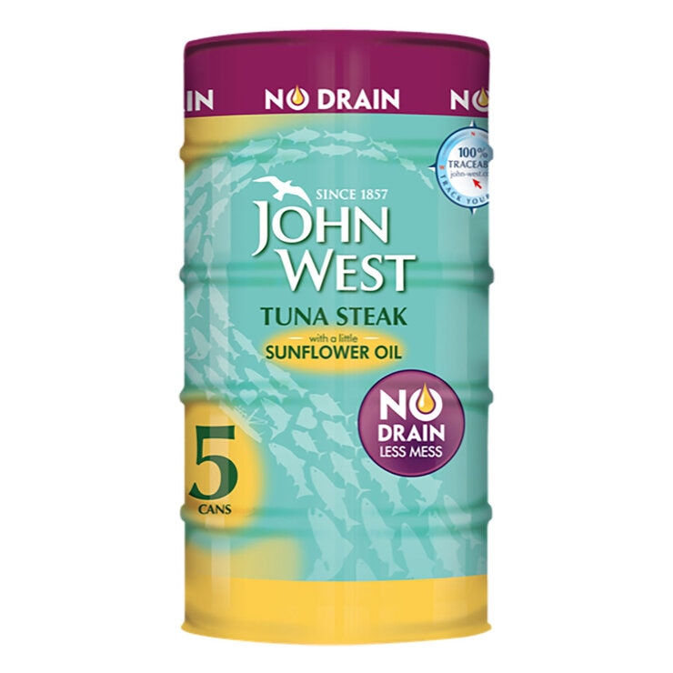 John West No Drain Tuna Steak in Sunflower Oil, 5 x 110g