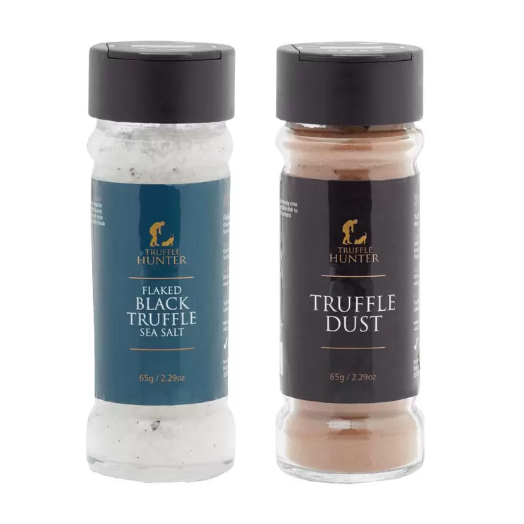Truffle Hunter Truffle Dust Shaker + Flaked Black Truffle Sea Salt, 2 x 65g