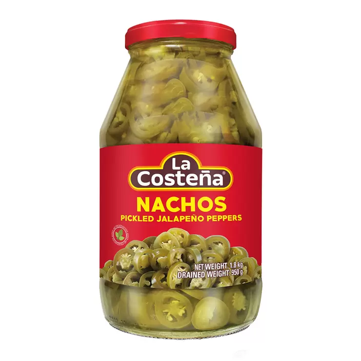 La Costeña Pickled Jalapeño Peppers are round-sliced jalapeño chillies pickled in vinegar, perfect for adding to nachos and excellent with cheese and tortilla chips. Spice up your movie nights with Jalapeño Chillies Nacho Slices from La Costena. These jalapeño slices are ready to use, perfect for creating delicious nachos and other Mexican-inspired dishes. Known for their tangy heat, these slices add a burst of flavour to any meal. Whether you're topping off your nachos, adding a spicy kick to your sandwiches or enhancing your favourite salads, these jalapeño slices deliver consistent taste and heat.