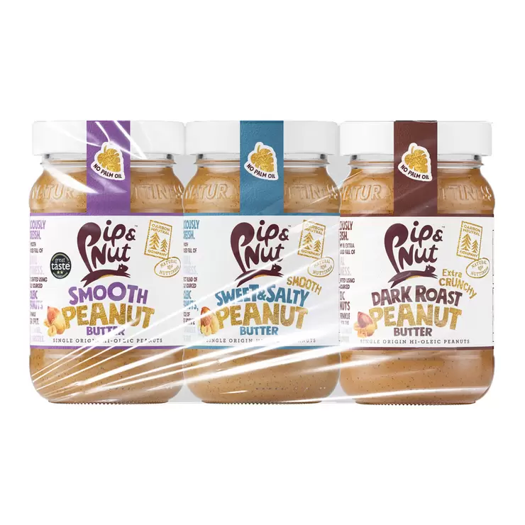 Pip & Nut Peanut Butter Variety Pack is created with your family in mind. This exclusive 3 pack of peanut butters has one for everyone in the family. All natural and with zero palm oil, this is a healthier, more sustainable and delicious choice. Carefully curated including the classic smooth peanut butter, Sweet & Salty smooth peanut butter and Dark roast crunchy peanut butter.