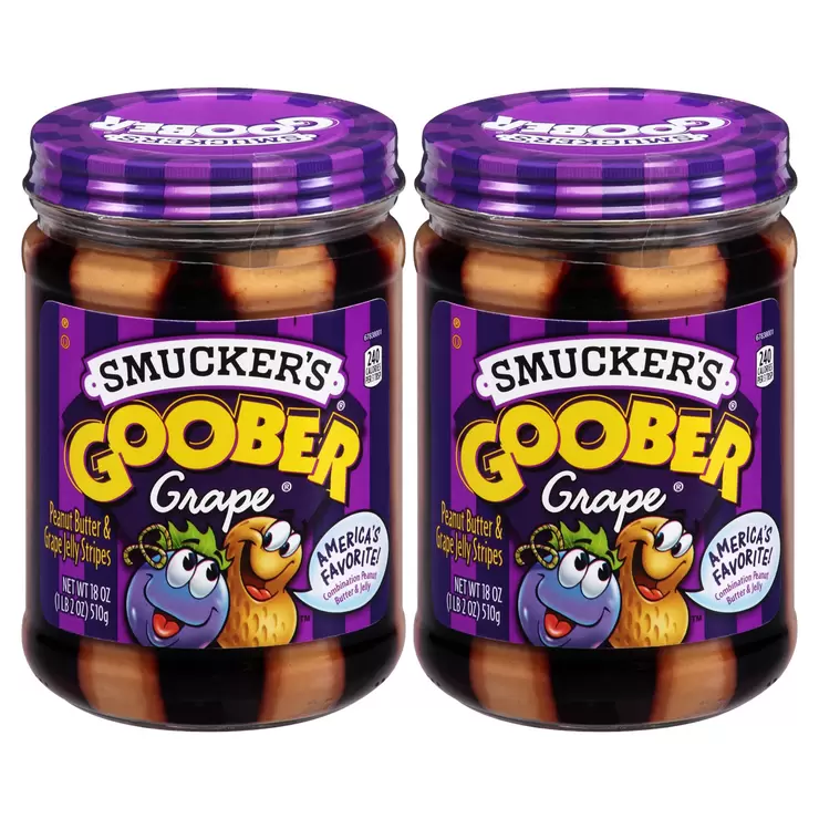 Goober Grape® Peanut Butter & Jelly Stripes is the ultimate combo made with Smucker’s Grape Jelly. Goober combines wholesome fresh-roasted peanuts and Smucker's Concord Grape to create peanut butter and jelly perfection. Perfect for that classic peanut butter and jelly sandwich!