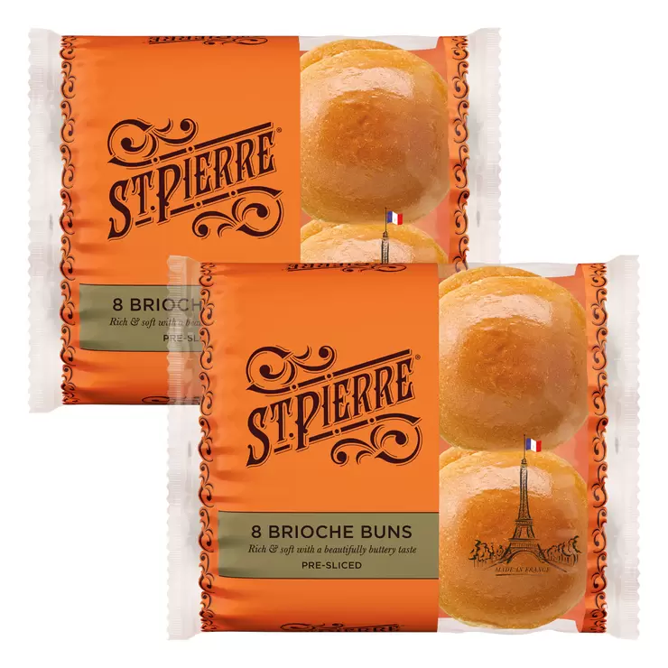St. Pierre Brioche Buns are pre-sliced, deliciously soft brioche buns, ready to be filled with your favourite burger. Golden like a Parisian sunset with a plump texture to perfectly hold your filling together and a shiny glaze on top, these gently sweet brioche buns taste great with every type of ingredient to take your meals to Paris.