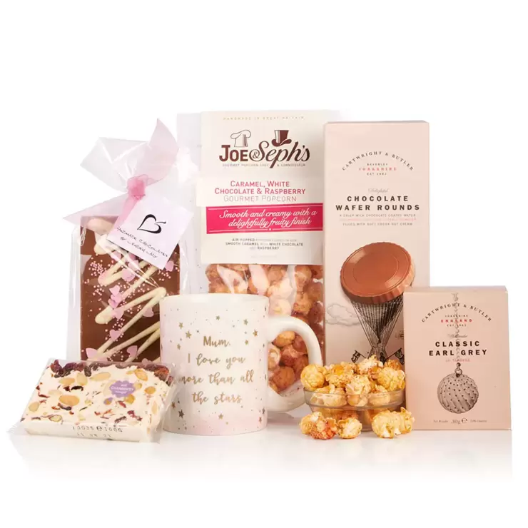 Make your Mum feel truly special this Mother's Day with this brightly themed gift full to the brim with luxurious treats she will relish, including an 'Mum I love you more than all the stars' mug that she will continue to enjoy using well after the delicious treats have been enjoyed.