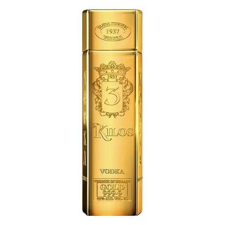 This masterfully blended 3 Kilos Vodka is immediately bottled on site into their signature patented gold bar shaped bottle, shielding the vodka from light deterioration. With a non-refillable cap, the luxuriously smooth 3 Kilos Vodka consistently delivers the golden standard of quality straight from their distillery in the south of Holland to your glass.
