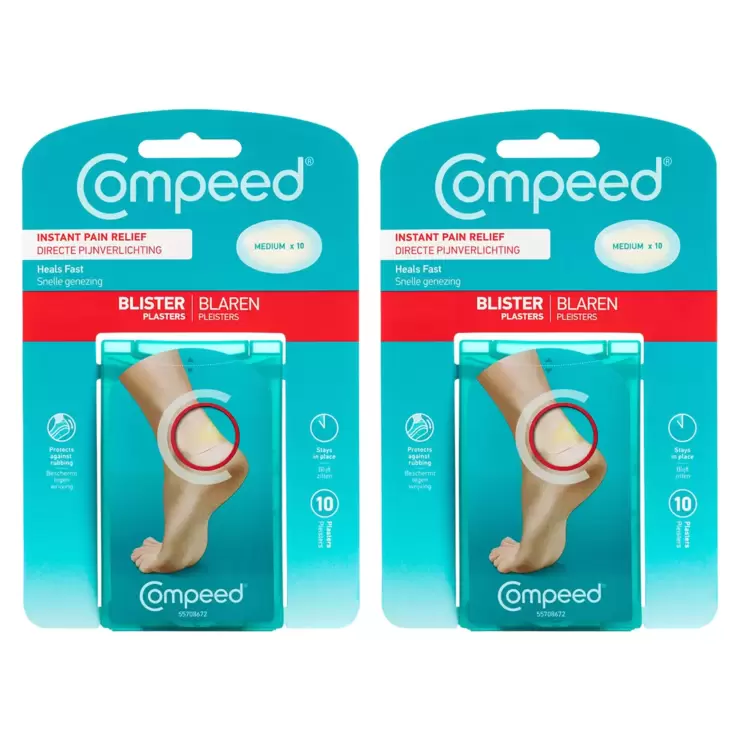 Compeed Blister Plasters provide instant pain relief. Whilst forming a protective cushion, the plaster absorbs excess moisture and provides optimum healing conditions for foot blisters. Compeed hydrocolloid technology is an active gel with moisture absorbing particles. Thick cushioning redistributes pressure from the blister to deliver instant pain relief. Compeed has a tapered edge so it contours smoothly with the skin’s surface. This reduces friction and ensures the healing process is not disrupted by painful rubbing.
