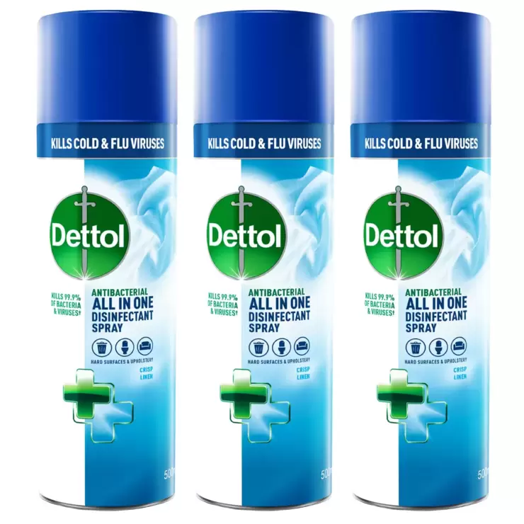 Dettol All-in-One Disinfectant Spray helps prevent the spread of harmful bacteria and viruses. This spray kills 99.9% of bacteria whilst also fragrancing the air.