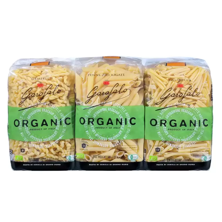 Variety pack of Garofalo Italian pasta made from 100% organic durum wheat.