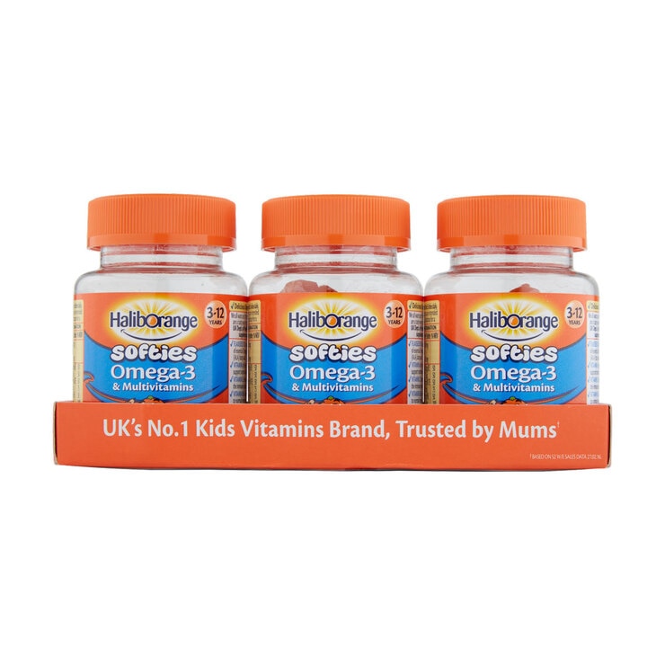 We all want our little ones to shine in life! Haliborange Omega3 & Multivitamin Softies are a tasty way for your child to get some essential vitamins they need every day. UK Department of Health recommends all children from 6 months to 5 years take supplements in the form of Vitamins A, C & D. Softies contain Flaxseed Oil - a source of essential omega3 fatty acids; Vitamin A - helps support normal vision; Vitamin C - helps support the immune system and Vitamin B5 - contributes to normal mental performance.