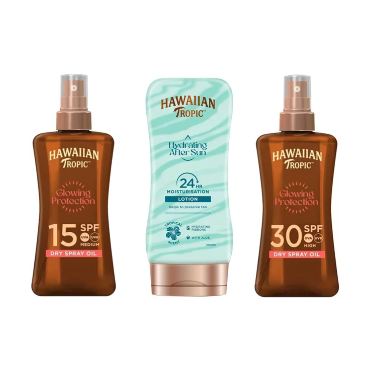 Hawaiian Tropic, Sun Oil Set, 200ml SPF 15 & 200ml SPF 30 Dry Oil Spray and 180ml Hydrating After Sun Lotion