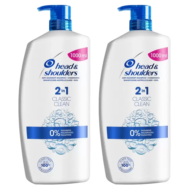 Head & Shoulders 2-in-1 Classic Anti-Dandruff Shampoo and Conditioner, 2 x 1L