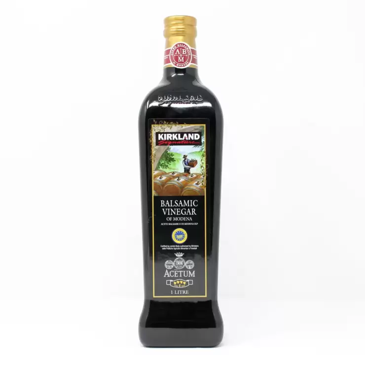Kirkland Signature Balsamic 4 leaf Vinegar produced in the rustic Italian region of Modena where balsamic vinegar originated. The vinegar is produced using a centuries–old recipe and matured in wooden cases.