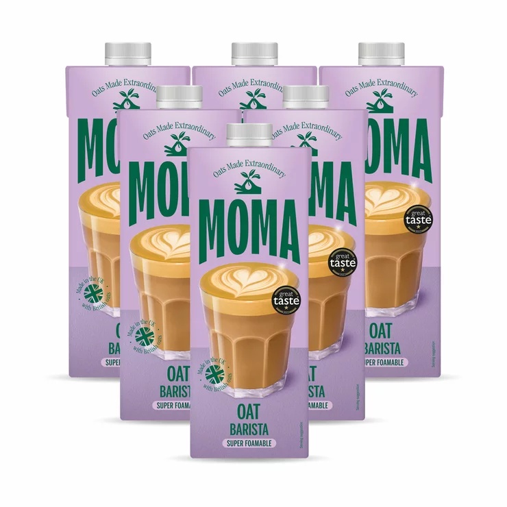 Moma Oat Drink Barista Edition is fully foamable for silky smooth coffees and is fortified with extra calcium and Vitamins D, B2 & B12 for a little extra goodness in every cup. This unsweetened oat drink is a source of beta-glucan, a dietary fibre linked to improving cholesterol levels and boosting heart health.