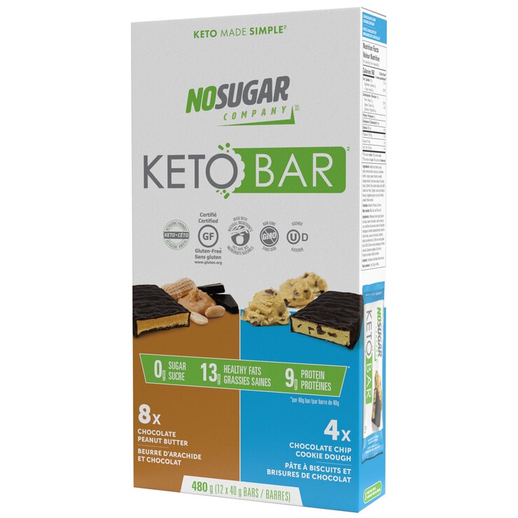 Introducing carefree indulgence, the No Sugar Co. Keto Bar is the first of its kind! Rich in flavour, healthy fats, and protein while keeping carbs as low as possible. With 0g of sugar, the No Sugar Co. Keto Bar will thrill your taste buds and provide the energy you need to power you through your day. The No Sugar Co. Keto Bar makes an excellent addition to Keto and Low Carb - High Fat meal plans. The Keto Bars are ketogenic friendly, made with natural ingredients, kosher, non-GMO and gluten free.