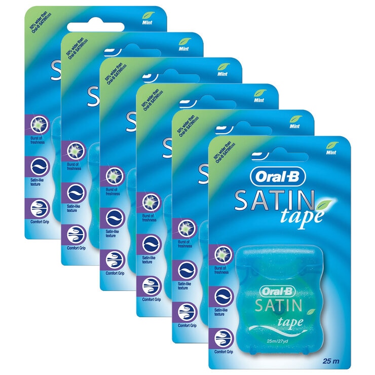 Oral-B Satin Tape floss instantly feels different as it releases a burst of mint freshness on contact that lets you know it is working. Its unique wide satin-like texture is comfortable to handle. It effectively cleans out plaque and particles between your teeth and below the gum line, so your teeth feel squeaky clean. Daily flossing with Satin Tape Floss you do more to keep your teeth and gums healthy.