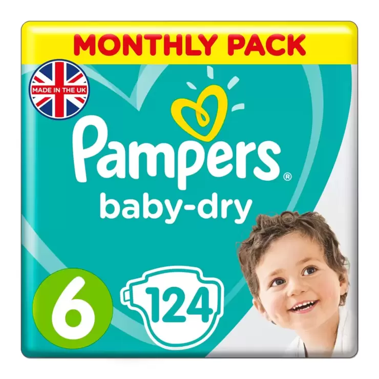 Pampers Baby Dry Nappies Size 6, Monthly 124 Pack