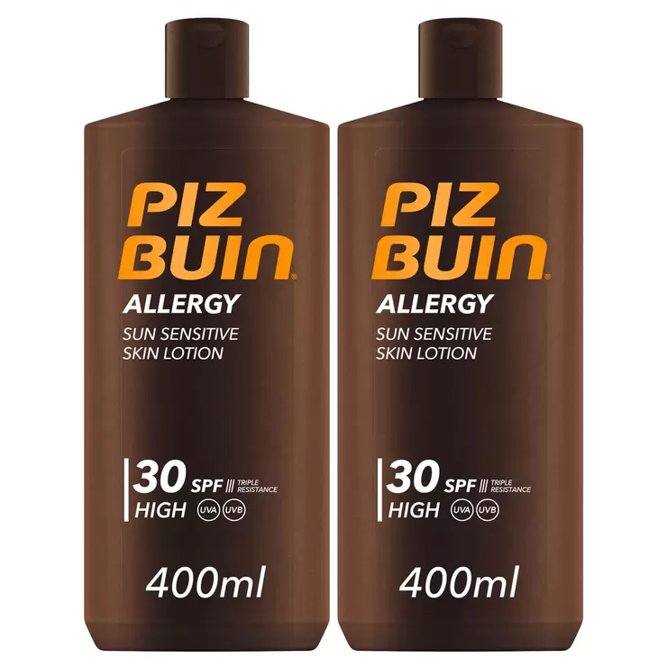 Piz Buin SPF 30 Allergy Suncare Skin Lotion, 2 x 400ml