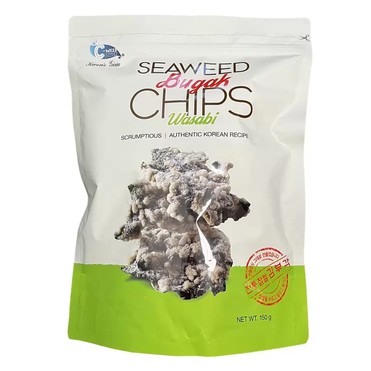 One of the most popular Korean snacks! Made with natural Korean seaweed, coated with sticky rice and seasoned with wasabi. Dried for about 15 hours for optimal taste and texture.