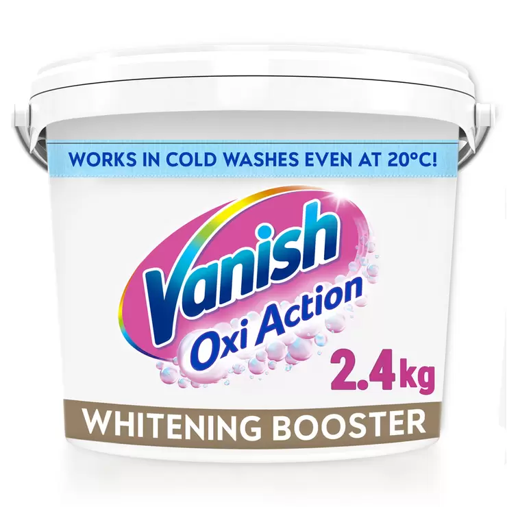 Vanish Gold Oxi Action Crystal White gives amazing results and instanly whiter whites in the first wash. The formula works in washes as cold as 30°C and is safe to use on everyday fabrics.