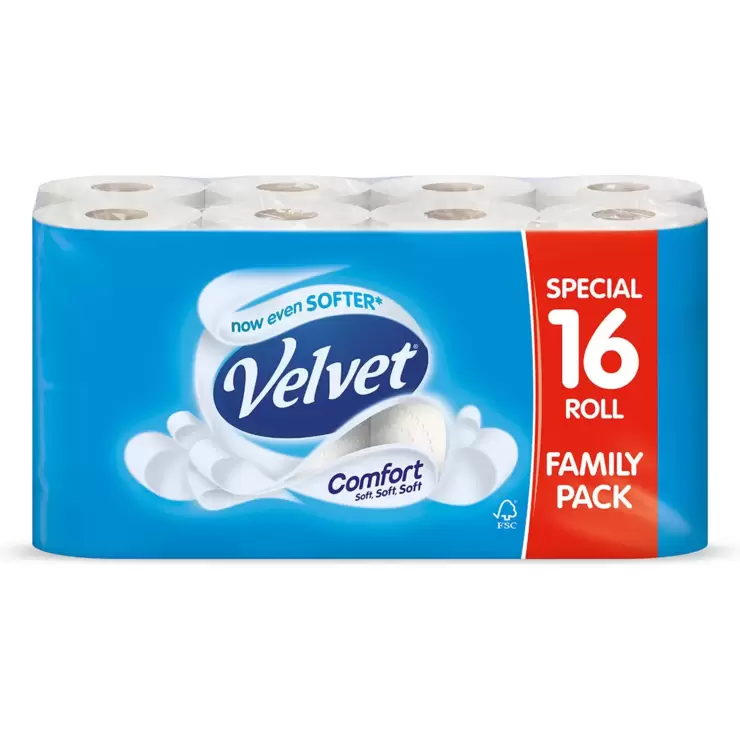 Velvet Comfort 2-Ply Toilet Tissue, 16 Rolls