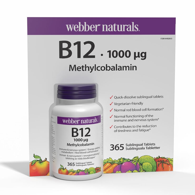 Vitamin B12 Methylcobalamin from Webber Naturals offers a daily dose of 1000 mcg of this essential B vitamin in its bioactive form, meaning the body can use it right away without requiring conversion. Vitamin B12 is well absorbed as a sublingual (under the tongue) tablet and acts quickly to restore vitamin B12 levels in the body.