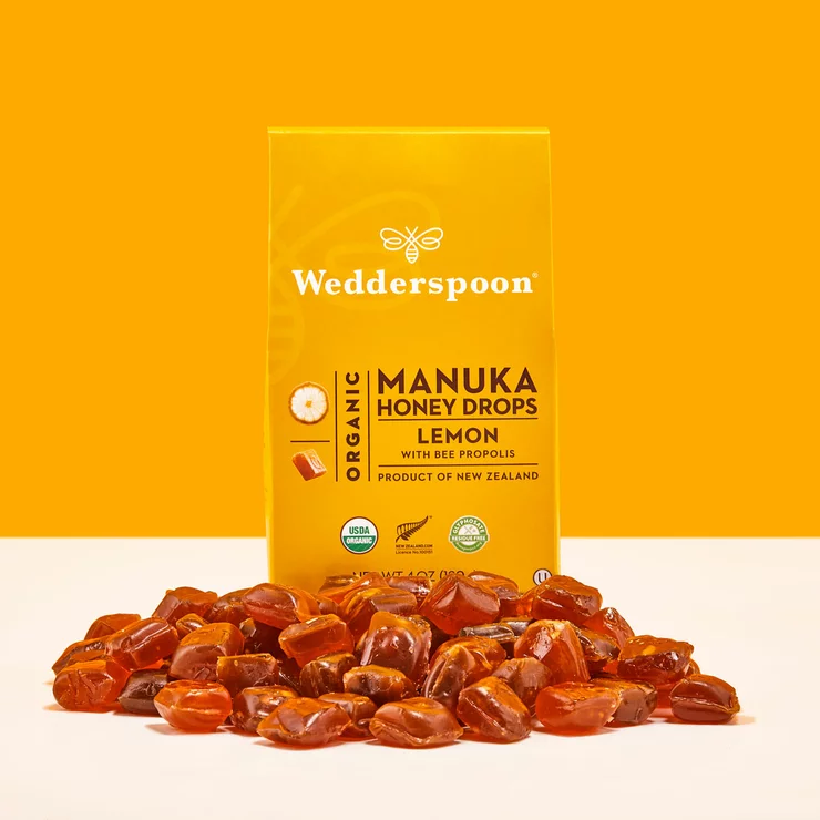 Perfect for cold, flu and allergy season. Wedderspoon's Organic Manuka Honey Drops in Lemon flavor are formulated with genuine organic Manuka Honey from New Zealand as well as Bee Propolis, which is most often used to boost the immune system. Our drops are gluten-free, dairy-free, nut-free, and GMO-free so they fit into every dietary and lifestyle preference. Individually-sealed drops are perfect to take with you anywhere.