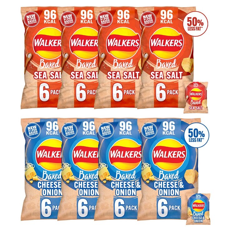 Walkers Baked Assorted Crisps are super crunchy crisps which contain 50% less fat than potato crisps on average*. These crisps contain 96 kcal per bag and are baked using the finest quality ingedients, never fried. Great for sharing, or as a tasty crunchy snack.