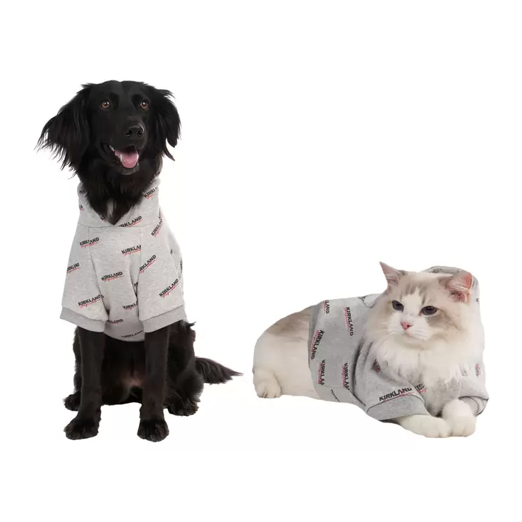 The Kirkland Signature Pet Logo Hoodie has a super soft cotton/polyester fabric and a pullover style that makes it easy to put on your pet. The Kirkland Signature logo's reflective print makes your pet ultra-visible at night. It comes in Black and Grey colours in sizes S - XL. The hoodie's thoughtful design also includes a leash hole and functional kangaroo pocket.