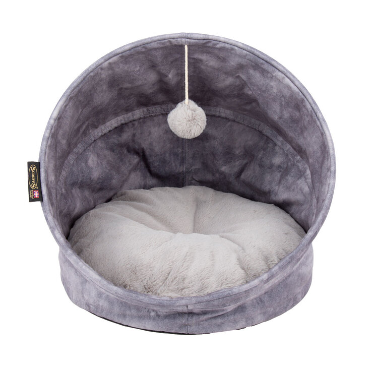 Scruffs® Kensington Cat Bed provides the ultimate support for your four-legged friend. Featuring a stylish eco-suede outer fabric and a deep-filled, super-soft, 100% polyester deep plush centre to ensure your pet remains as comfortable as can be. The matching outer stitching achieves a coherent finish and detailing across each bed. The bed features a roofed exterior which provides additional safety for your pet and the attached string toy will offer hours of endless entertainment. The inner cushion only can be machine washed at 30 degrees.