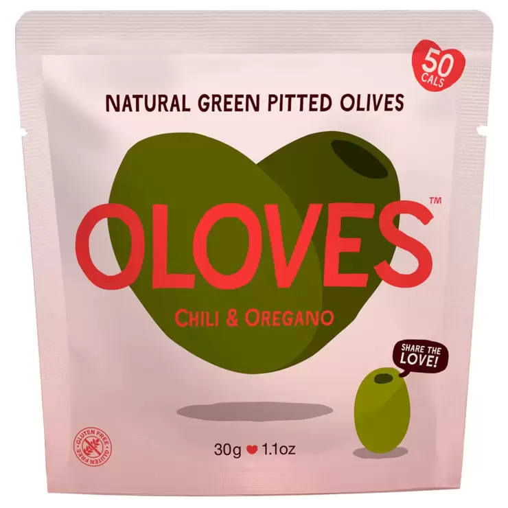 Big juicy olives seasoned with a little chilli, garlic and oregano. These Oloves are a perfect, 100% natural, treat for snacking on the go and for lunch boxes.