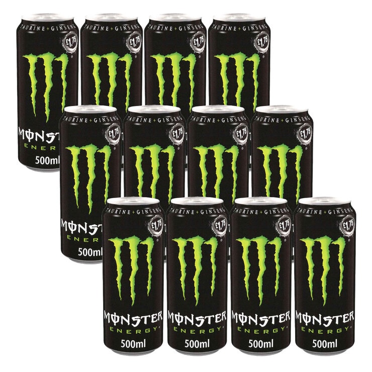 Monster Energy Original 500ml can is a great tasting energy drink with energy blend and 160mg caffeine. The Monster Energy blend combined with caffeine gives you the energy you need in a smooth easy drinking flavour.