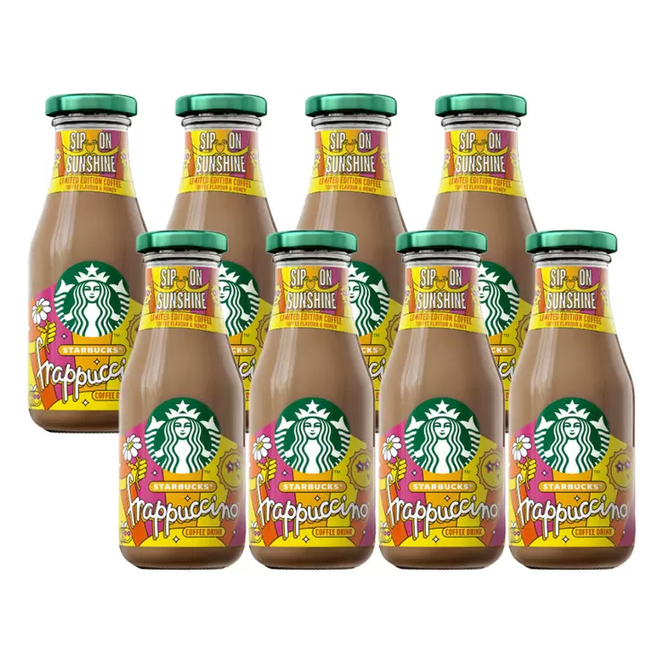 Starbucks Frappuccino Sip On Sunshine is a delicious creamy coffee drink ideal for at home or on-the-go. This iced coffee drink is inspired by a Starbucks coffeehouse original and brings summer vibes, no matter where you are. This indulgent blend of 100% Arabica coffee and limited edition toffee flavour and honey drink is best served chilled or over ice, just gently shake to awake the flavours!