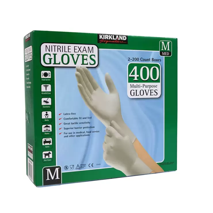 Kirkland Signature Medium Nitrile Exam Gloves are 100% latex–free, with comfortable fit and feel, great tactile sensitivity and a superior barrier of protection. Ideal for use in medical, food service and other hygiene sensitive applications.